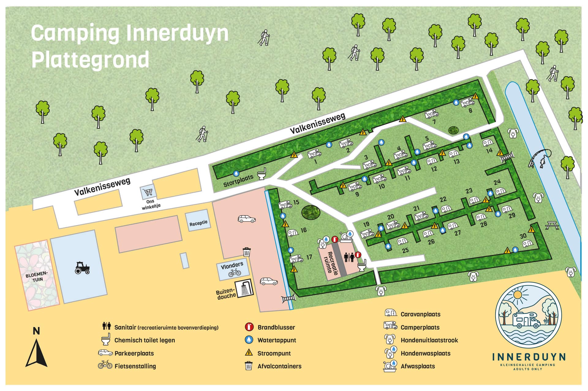 Bij Camping Innerduyn vinden we rust, ruimte en privacy erg belangrijk. Dat zie je terug in de grootte van de plaatsen, die variëren tussen de 150 en de 200 m2. De plaatsen zijn van elkaar gescheiden met een mooie hoge haag voor voldoende privacy. Maar deze zijn zo gepositioneerd dat de Camping toch een open karakter behoudt.